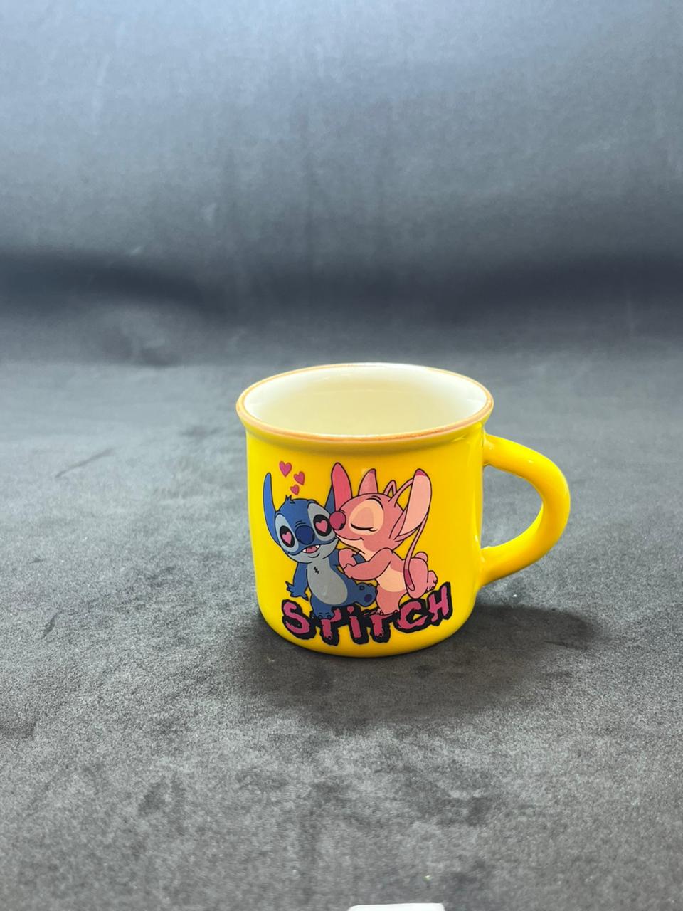 Elegant Stitch glass cup with a colorful stitch theme — perfect for serving coffee.